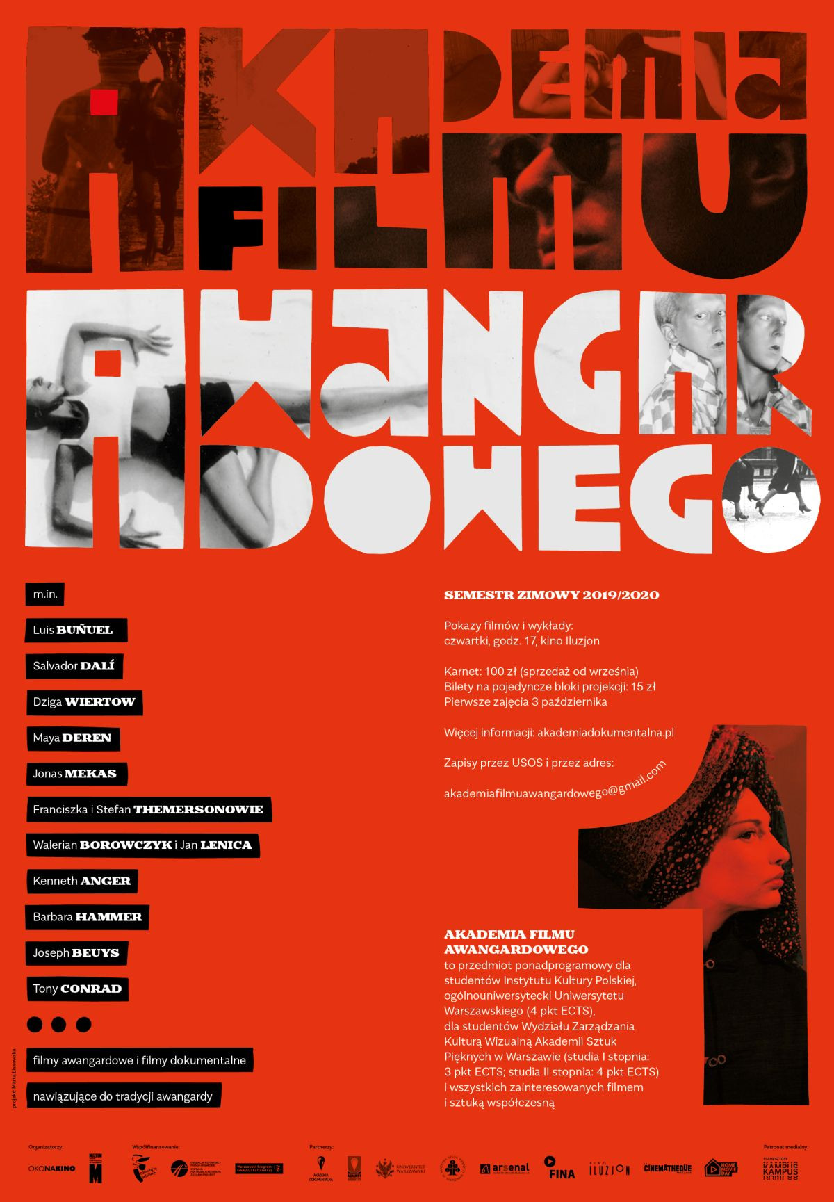 Trudno zrozumieć współczesne kino, w szczególności dokumentalne, bez wiedzy na temat dzieł, które stworzyły podstawę dla kolejnych pokoleń twórców. Program obejmuje więc projekcje filmów legendarnych twórców: Luisa Buñuela i Salvadora Dalego, Dzigi Wiertowa, Mai Deren, Jonasa Mekasa, Franciszki i Stefana Themersonów, Waleriana Borowczyka i Jana Lenicy, Kennetha Angera, Yoko Ono i wielu innych. Przy okazji sylwetki Mai Deren, Josepha Beuysa czy Tony’ego Conrada są idealnym wstępem do odbioru współczesnych filmów dokumentalnych. Akademia filmu awangardowego daje szerokie spojrzenie, pozwala jeszcze lepiej rozumieć sztukę. Każdemu spotkaniu będzie towarzyszył wykład specjalisty, który pozwoli zrozumieć kontekst powstania i intencje twórców.